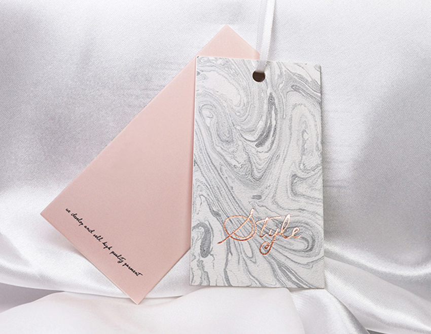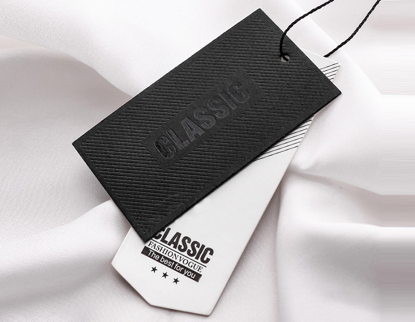 特殊工藝吊牌:服裝吊牌即各種服裝上吊掛的牌子,包含一些服裝材質(zhì),洗滌注意事項(xiàng)等信息。這種特殊工藝的吊牌的制作,在黑卡紙上做局部UV的圖案和標(biāo)識(shí),已達(dá)到增強(qiáng)吸引眼球的效果。