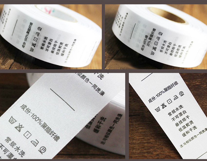 水洗標(biāo)簽,是服裝服飾類關(guān)于商品成分及水洗說明的標(biāo)簽,材質(zhì)通常有緞面的,圖層布的和棉布帶的,通過標(biāo)簽印刷機(jī)將內(nèi)容印刷到不同的材料上。水洗標(biāo)是幾種特殊材料做的標(biāo)簽。它的實(shí)質(zhì)也是一種標(biāo)簽。只是在材料上跟普通紙質(zhì)的標(biāo)簽有所區(qū)別。主要應(yīng)用在服裝行業(yè),家紡行業(yè),箱包行業(yè)里,主要是打印一些服裝參數(shù)和注意事項(xiàng)??蛇^洗不掉色。